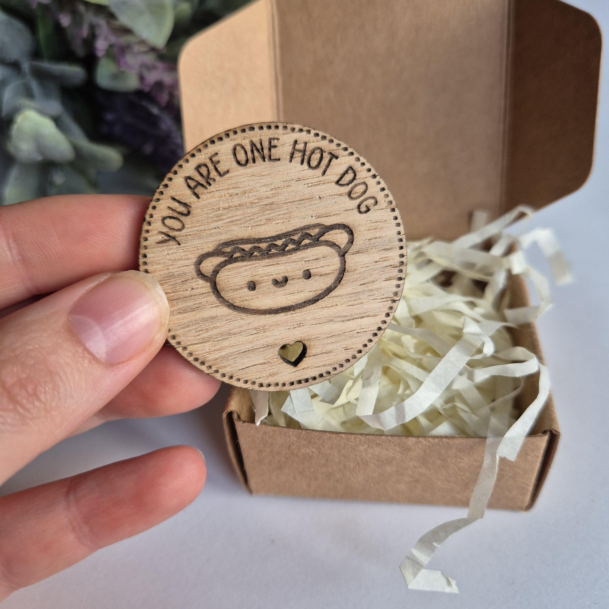 The wooden engraved token comes perfectly presented in a square brown box with shredded tissue paper, ready for gifting!